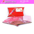 | 母の日 ギフト ラッピング付 扇子 ピンク 蝶 と お花 (シルク) 花 ハンカチ付 |