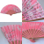 ![]() ラメが入り、蝶達とお花の華やかな扇子です。竹部分は交互にピンク色が入って開けるととても綺麗です。ピンクの刺繍ハンカチタオルがついています。 |