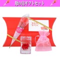 | 母の日 プレゼント 赤いバラ (ミニ) プリザードフラワー と ミニエプロンドレス(ポーチ) ギフトセット 贈り物 (お母さんありがとうメッセージカード付) |