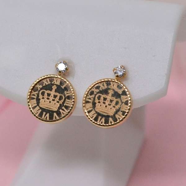 | コイン形の 可愛い 王冠デザイン のピアス クラウン(王冠)は幸運と成功の意味があると言われています。 お持ちのコインペンダントと合わせても ピアスだけでも素敵です♪ □クラウン(王冠)デザイン(周りはローマ数字)のコイン形の上にキュービックがついています。 商品説明 □材質 K10(10金) □石 キュービック 約2ミリ □サイズ 縦 約11ミリ 横 約8.0ミリ □重量 約0.8グラム □ポスト長さ 約10ミリ 太さ約0.7ミリ □備考 品質保証書 ラッピング付 王冠モチーフ 可愛い かわいい コイン ピアス おしゃれなピアス 彼女 女性 妹 姉 妻 奥さん 誕生日 クリスマス プレゼント ギフト |